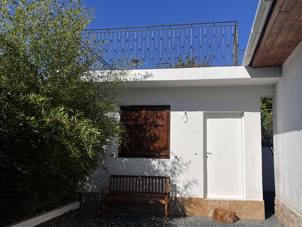 Különálló 20 m2-es vendégrész: 1 szoba, zuhanyzó-WC, tetőterasz