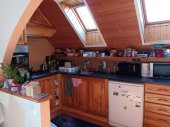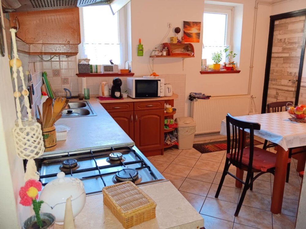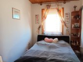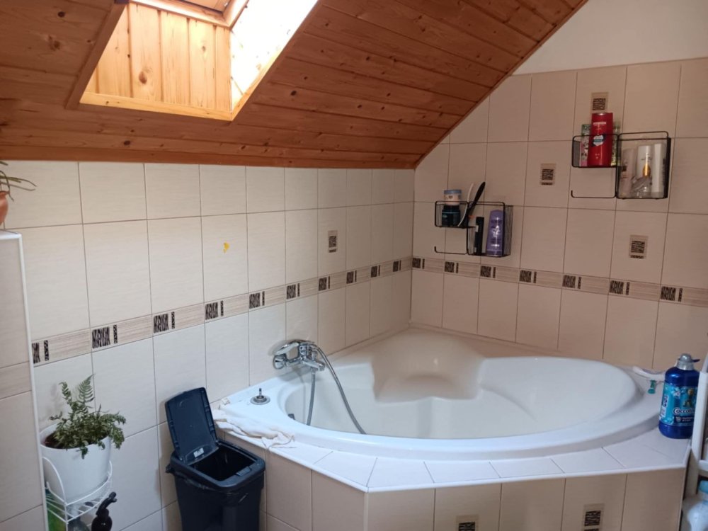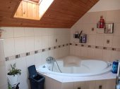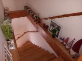 Az emeleti, 90 m²-es lakrész szintén teljes értékű otthonként funkcionál: nappali-konyha-étkező-kamra, sarokkádas fürdőszoba, külön mosdó, valamint három tágas hálószoba biztosítja a kényelmet.
