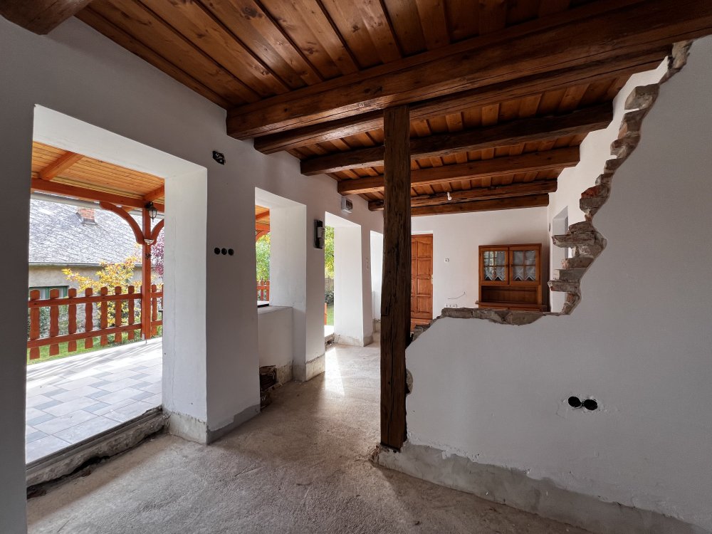 Az ingatlan különlegessége nem csupán a szépen restaurált, eredeti fa gerendás parasztházban rejlik, hanem a hozzá kapcsolódó, bővítési potenciált rejtő apartmanlakásban, garázsban, patakban és gondozott kertben, amely a vidéki élet minden varázsát megidézi.